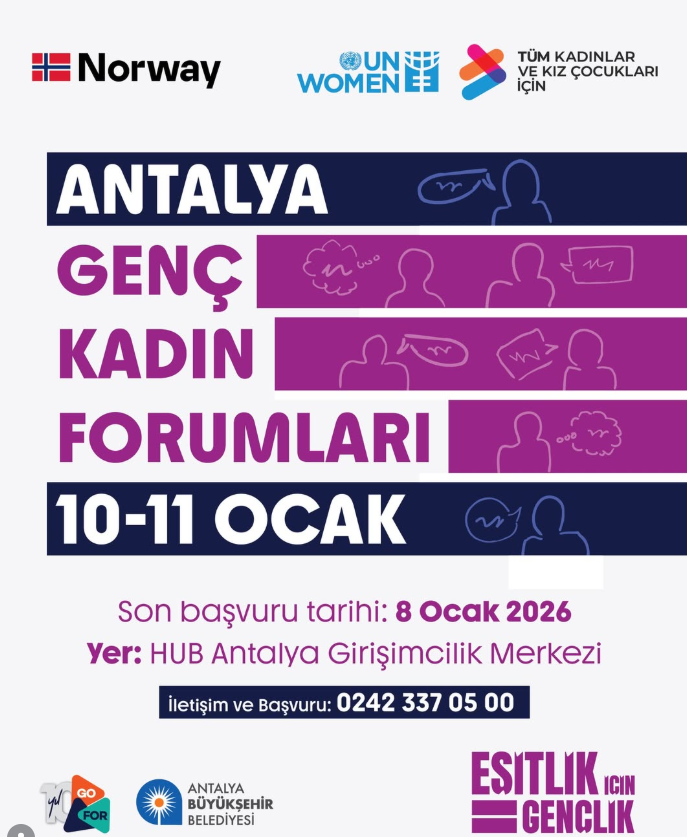 В рамках программы «Молодёжь за равенство», реализуемой при сотрудничестве UN Women, Правительства Норвегии и GoFor, а также в партнёрстве с Муниципалитетом Антальи, Форумы молодых женщин пройдут в Анталье 10–11 января.
